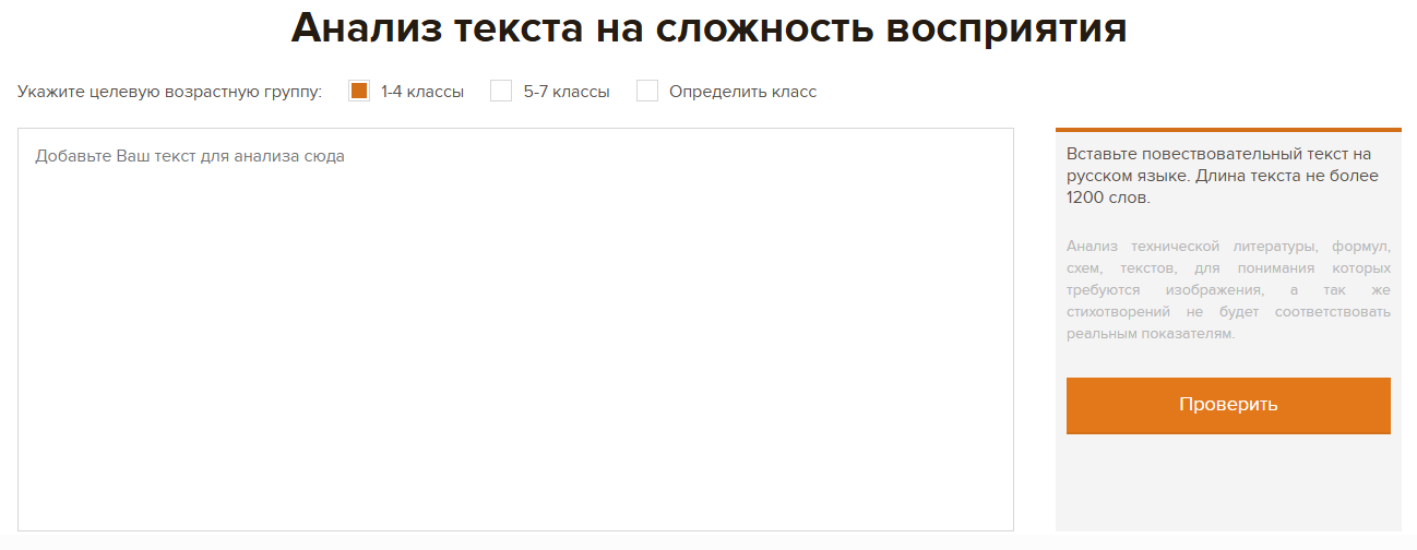 Оценка текстов, которой можно воспользоваться на сайте, поможет авторам, пишущим для детей, придерживаться необходимого уровня сложности для понимания создаваемых произведений.